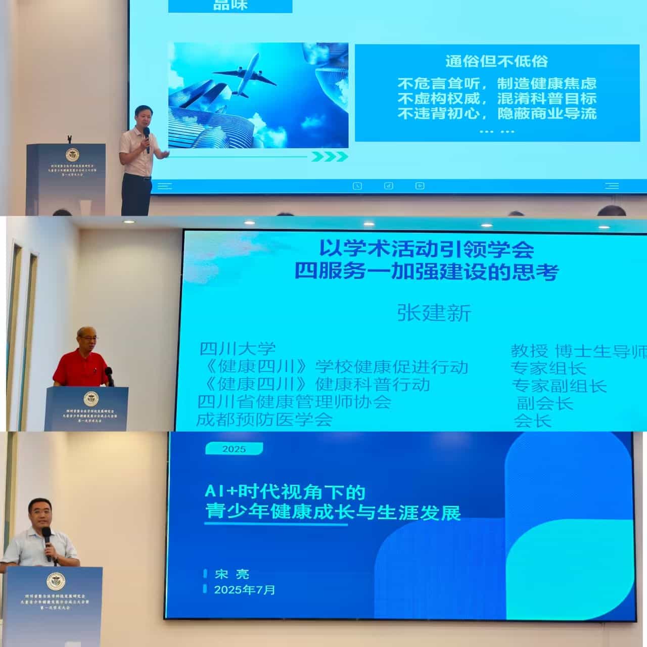 首届学术会议上,张建新教授、宋亮教授、程刚教授,围绕《以学术活动引领学会四服务一加强建设的思考》、《AI+时代视角下的青少年健康成长与生涯发展》、《从专家到大众,如何打造专业又易懂的健康科普》等主题发表了特邀学术报告,为与会者提供了宝贵的学术资源和实践经验。