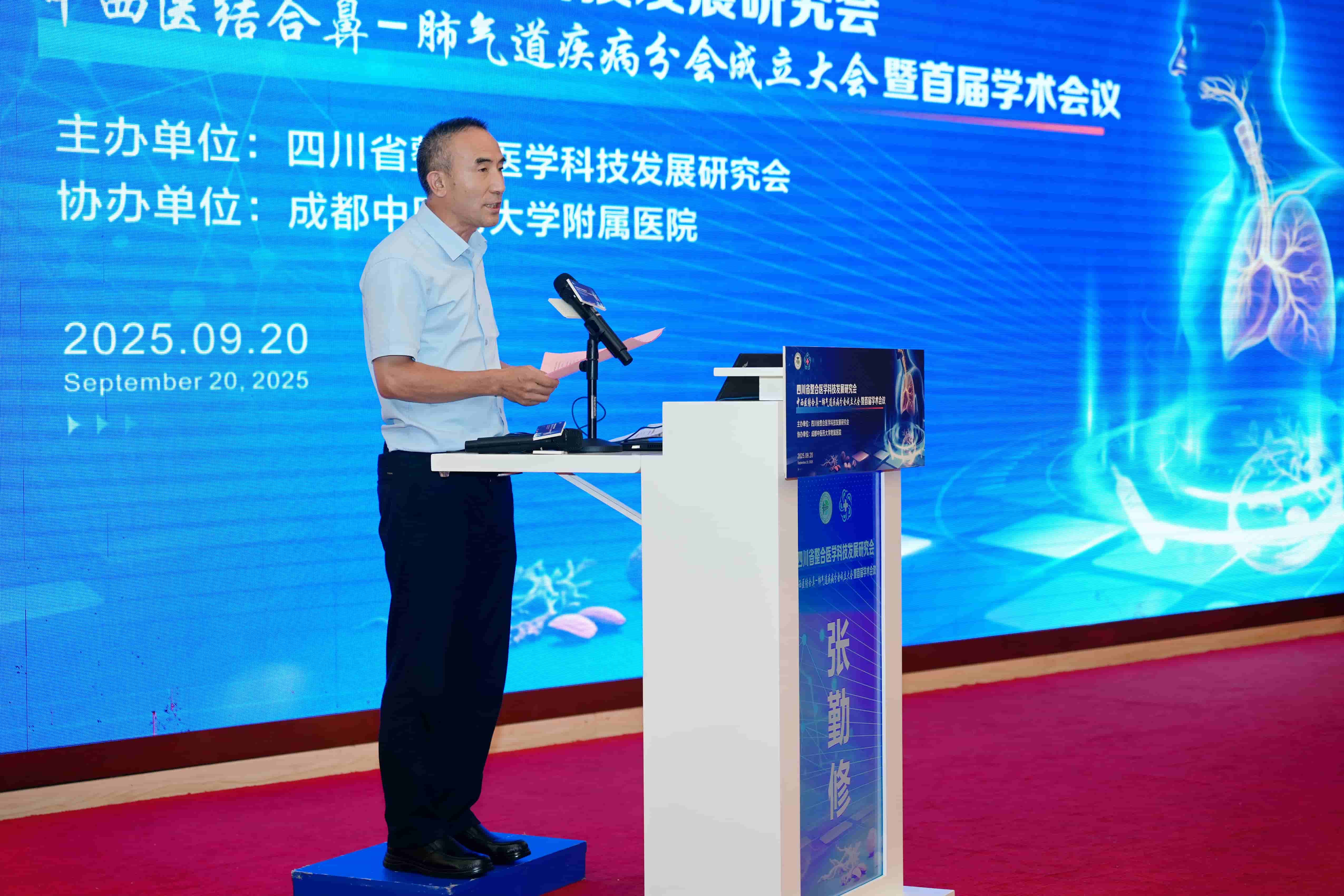 2025年9月20日,四川省整合医学科技发展研究会中西医结合鼻-肺气道疾病分会成立大会在成都隆重举行。大会汇聚了省内外呼吸与耳鼻喉领域的知名专家、学者及临床一线代表,共同见证了分会的正式成立。在成立选举、授牌聘任和学术交流等议程推进的同时,大会融入了党建环节,以党建引领凝聚发展共识,为分会未来发展注入政治动能。