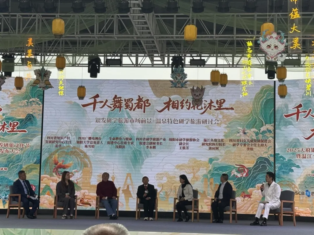同期举办的"银发研学旅游市场前景"分论坛上,四川省知识产权发展研究中心主任姜华、四川广播电视台银龄大学运营部负责人陈雪姣、生命教育与健康促进中心首席专家:沈際洪、四川锐杰研学总经理李本楷、温江鱼凫研究院执行院长唐应树、绵阳市旅游协会研学分会副会长王筱芳、四川省妇女儿童发展促进会研学专委会主任李琅 ,围绕银发群体的文化需求与产业机遇展开深入探讨。