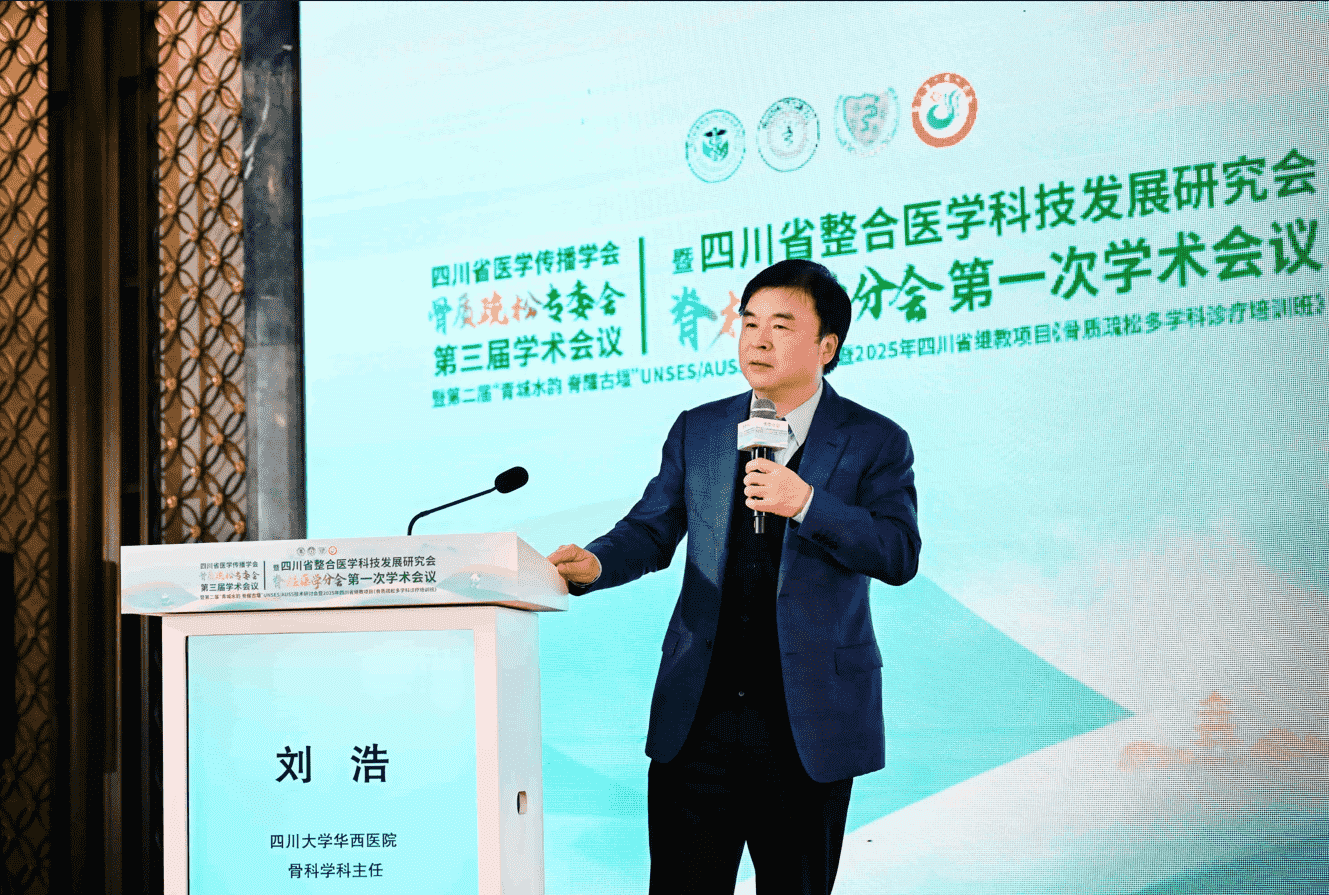 为深入践行"健康中国"战略,推动脊柱疾病诊疗向多学科整合、规范化、精准化发展,2025年12月5日-12月6日,四川省整合医学科技发展研究会脊柱医学分会成立大会暨第一次学术会议在风景秀丽的都江堰市隆重举行。本次大会由成都市第三人民医院、都江堰市人民医院联合承办,以"整合创新、脊术精进"为主题,汇聚了省内外脊柱外科、骨质疏松防治、生物材料及智能医疗等多领域专家学者,旨在打破学科壁垒,整合优质资源,共同探索脊柱疾病诊疗与康复的全新模式,为提升区域脊柱健康水平注入新动能。