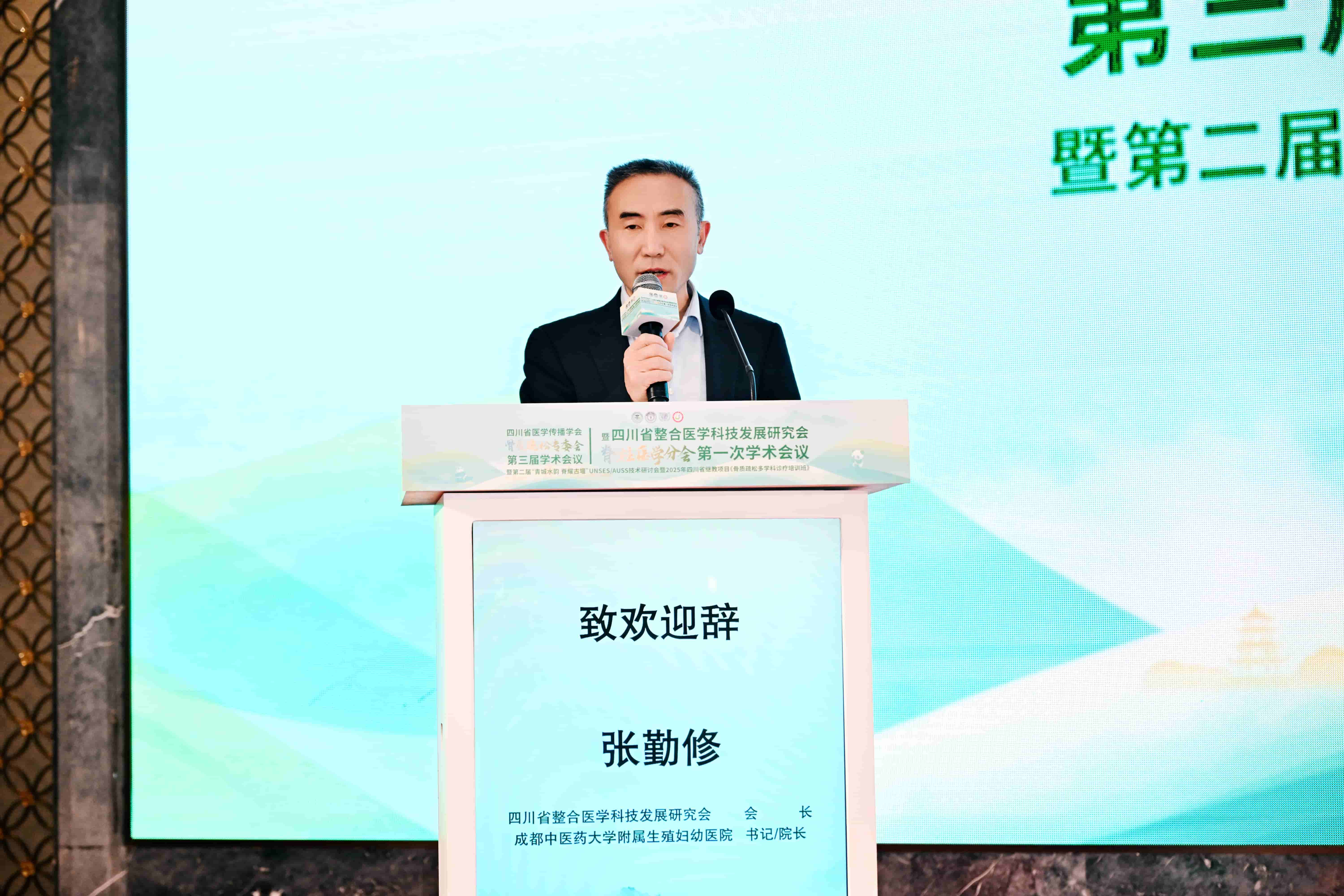 会议在成都融创国际会议中心召开,由四川省整合医学科技发展研究会主办,脊柱医学分会、骨质疏松专委会及多家医院共同协办。四川省整合医学科技发展研究会会长张勤修教授、成都市第三人民医院党委书记吴奎书记、都江堰市卫生健康局副局长贾如刚局长、四川大学华西医院宋跃明教授、四川大学华西医院刘浩教授等专家学者以及都江堰市人民医院领导等嘉宾莅临现场,与线上线下与会同仁共同见证了分会的诞生。