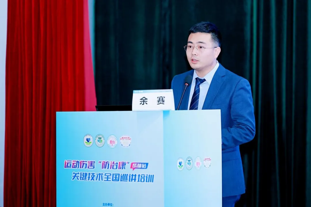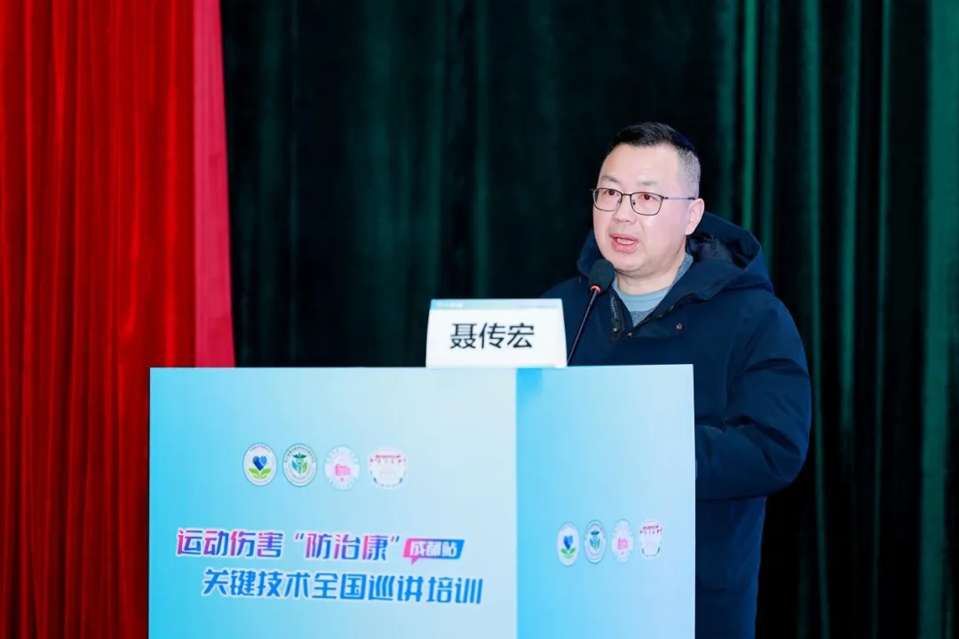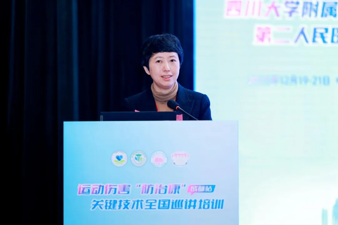 成立大会后进行了中国医学救援协会运动伤害分会“运动伤害‘防—治—康’关键技术全国巡讲培训。成都市卫健委副主任刘志刚在培训班开幕式上的讲话中强调,运动伤害的“防—治—康”是一项涉及健康促进、疾病预防、医疗服务和健康管理的系统工程,是推动医疗服务模式从“以治病为中心”向“以健康为中心”转变,践行医防融合、关口前移理念的重要体现。他高度评价了本次巡讲培训聚焦关键技术、兼顾前沿与基层应用的实践意义,并期待以此次会议为契机,进一步加强医疗机构、专业学科以及医疗与体育系统之间的协同,将先进理念与技术转化为服务群众的实际能力。作为本次大会的承办方,四川大学附属成都市第二人民医院院长陈蕾教授在欢迎辞中深情回顾了医院“仁爱济民、勤慎服务”的百年传承。她表示,医院长期致力于骨科、运动医学及康复医学的学科建设,深刻体会到运动伤害管理必须从风险评估、精准诊疗到系统康复进行全流程统筹。承办此次全国性学术会议,是医院将先进经验转化为提升诊疗服务质量的实际举措,医院将以更加开放的姿态,加强与国内顶尖专家团队的交流合作,为推动运动医学事业发展贡献力量。开幕式上,还播放了中华医学会运动医疗分会(CSSM)创始主委李国平教授和中国医学救援协会会长李宗浩教授的视频致辞。解放军总医院第三医学中心邢更彦教授、中国医学救援协会运动伤害分会会长、四川大学华西医院李箭教授作为专家代表先后致辞,从国家政策、学术前沿和临床实践等多维度阐述了推动运动伤害防治康一体化建设的深远意义。